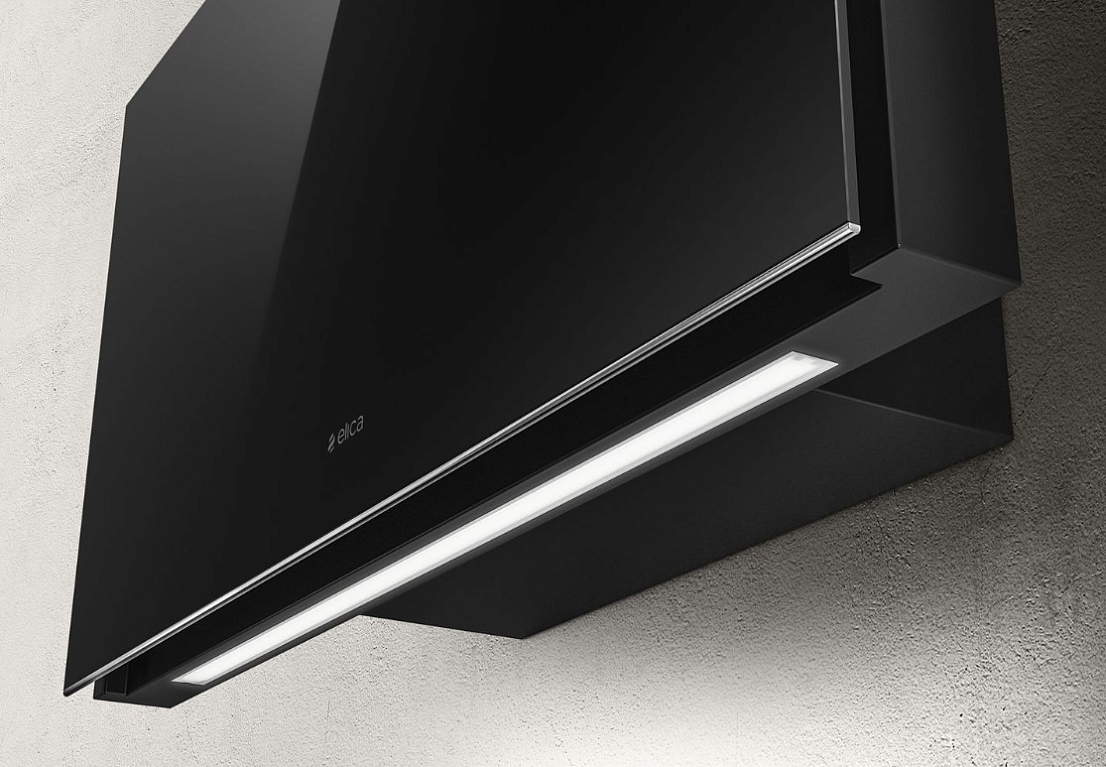 Elica PLAT BL/F/80 este o hotă elegantă și performantă, echipată cu tehnologia Multi-d-Capture pentru o absorbție perimetrală eficientă. Designul minimalist, cu sticlă neagră securizată și profil din aluminiu, se potrivește perfect într-o bucătărie modernă și poate fi instalată între dulapuri suspendate.