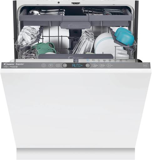Mașina de spălat vase Candy CI 4C4F1A este un model complet încorporabil cu lățimea de 60 cm, destinat pentru 14 seturi de vase. Dispune de 8 programe de spălare, inclusiv intensiv, economic și rapid, precum și funcția de amânare a începerii până la 24 de ore. Nivelul de zgomot este de 44 dB, iar clasa de eficiență energetică este C. Uscarea este de tip condensare cu deschidere automată a ușii pentru o uscare mai bună a vaselor. Include al treilea coș pentru tacâmuri și coș superior reglabil. Modelul suportă conectivitate Wi-Fi și Bluetooth pentru control prin aplicația hOn. Dispune de indicat