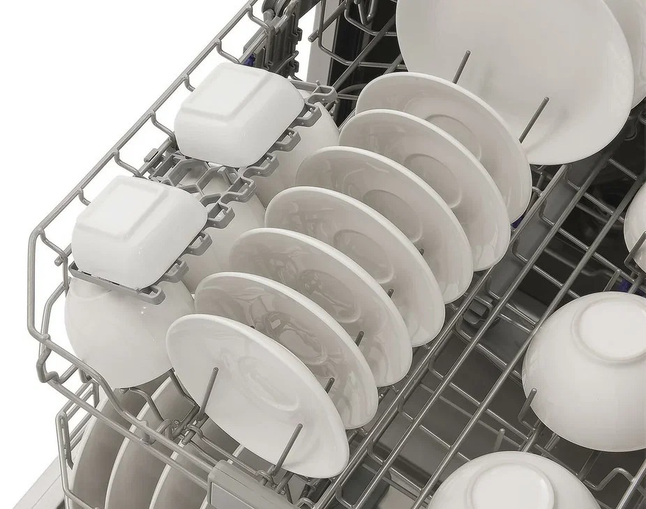 Modelul este echipat cu trei coșuri, inclusiv unul reglabil pe înălțime și un al treilea coș dedicat tacâmurilor. Acest lucru eliberează spațiu în partea inferioară și asigură o spălare mai eficientă. Funcția de